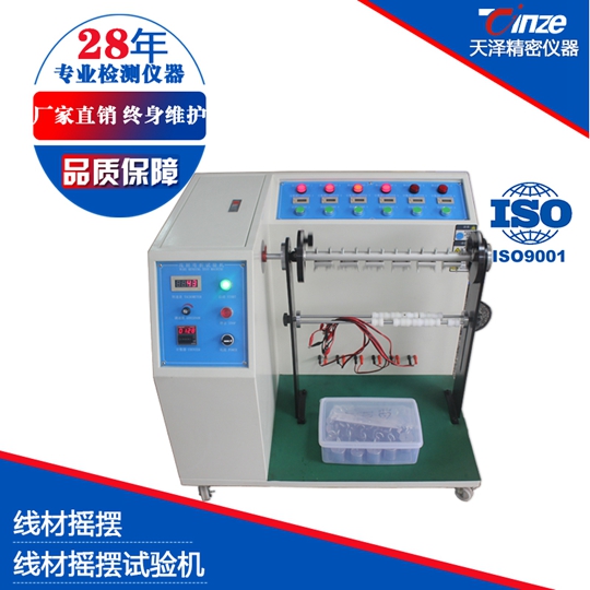 試驗(yàn)方法:試法是將試料固定在夾具上,并加上一定荷重,夾具左右搖擺,經(jīng)一定次數(shù)后,檢查其斷線率,或至無(wú)法通電時(shí),查看其總計(jì)數(shù)次數(shù),能自己動(dòng)停止工作;