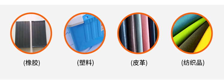 橡膠、皮革和紡織、電鍍、自由拆卸的組件、漆品、印刷圖樣等產(chǎn)品。